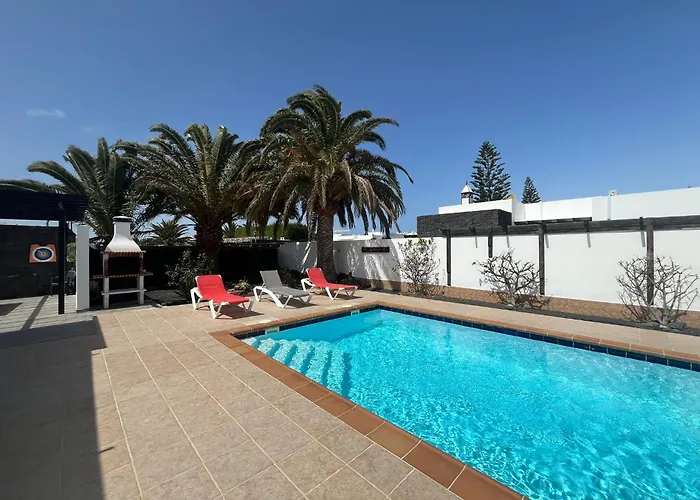 Three Palms Villa, Playa Blanca is located 6 km from the Pechiguera Lighthouse and offers guests to enjoy their evening on a patio with a dining table.
